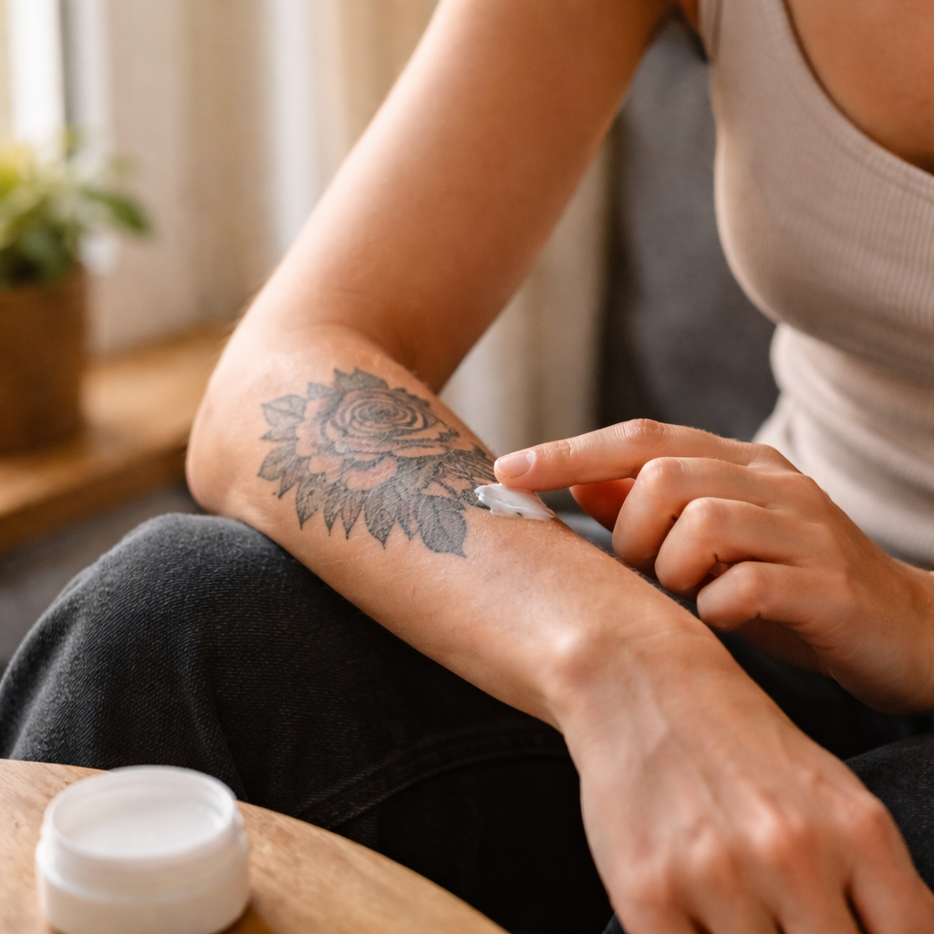 Un tatouage bien hydraté cicatrise toujours mieux qu’un tatouage trop lavé ou surtraité.
