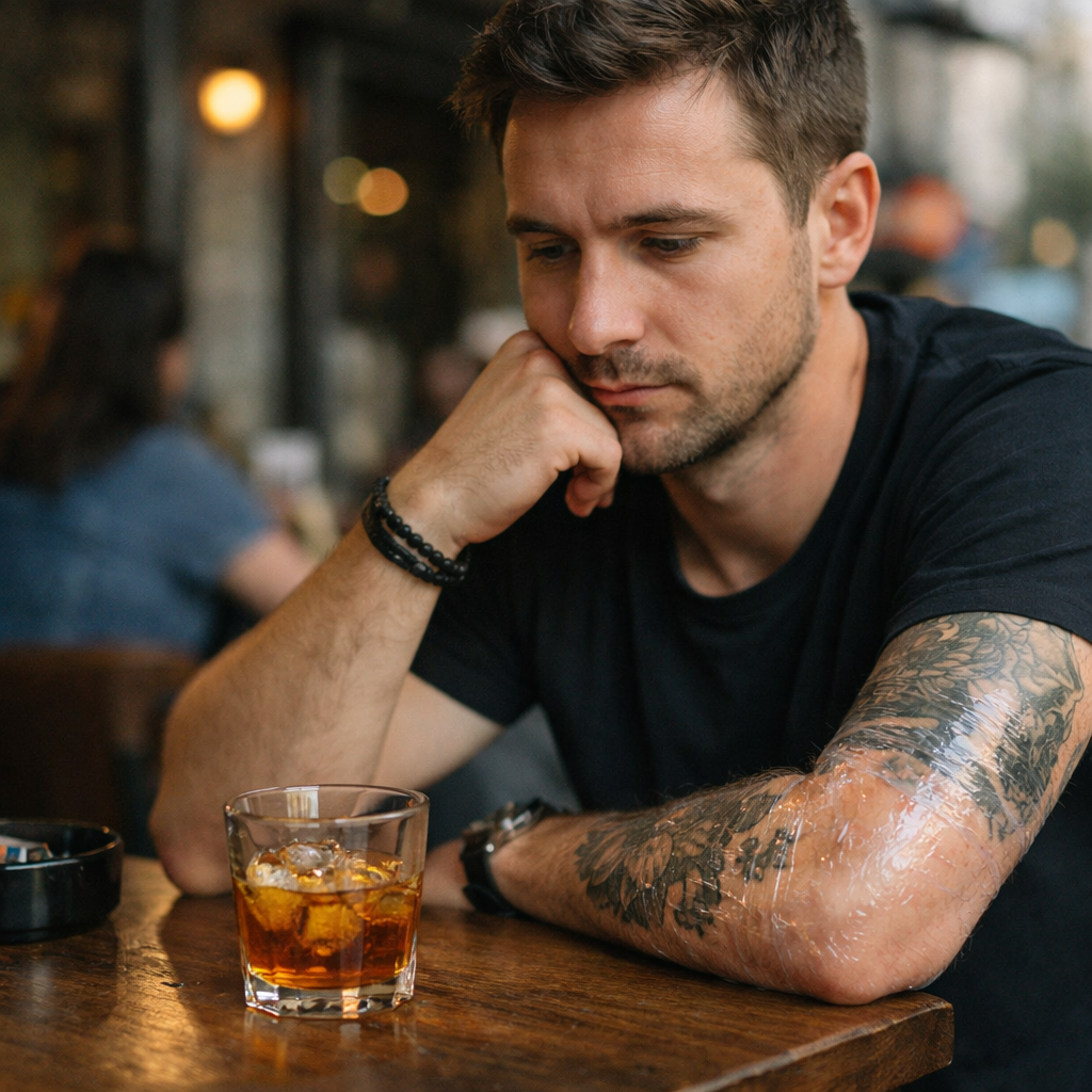 Pourquoi l’alcool pose problème après un tatouage Un tatouage, même petit, n’est jamais anodin pour le corps. La peau vient d’être piquée des milliers de fois. Elle réagit, elle chauffe,